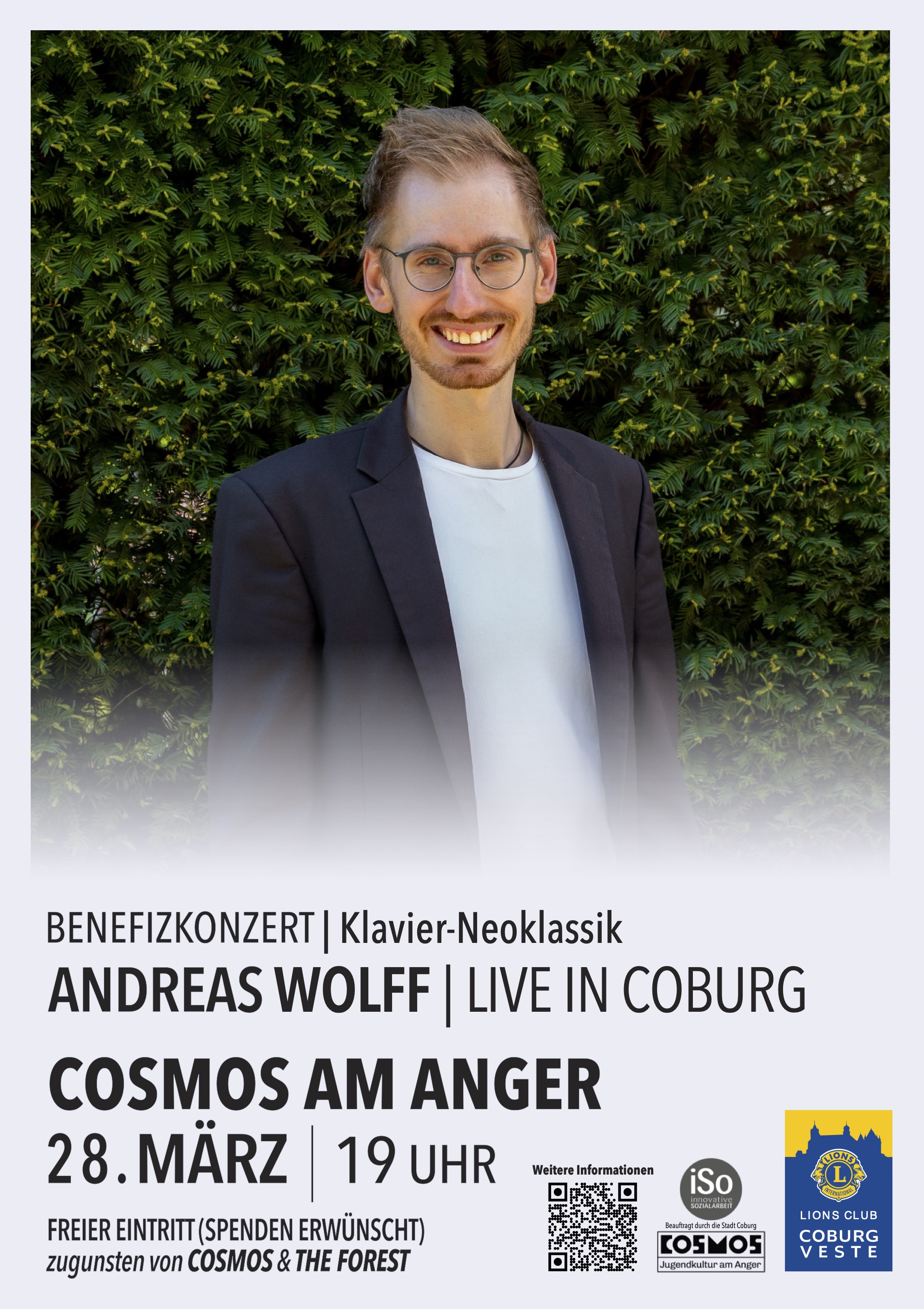 Das Konzert verbindet Musik mit einem guten Zweck: Der Eintritt ist frei, um Spenden für das Jugendkulturzentrum COSMOS am Anger und das Aufforstungsprojekt THE FOREST von Martin Kohlstedt wird gebeten. Ein Abend voller neoklassischer Klavierstücke, erzählerischer Tiefe und persönlicher Geschichten erwartet das Publikum in einem kreativen, inspirierenden Umfeld.