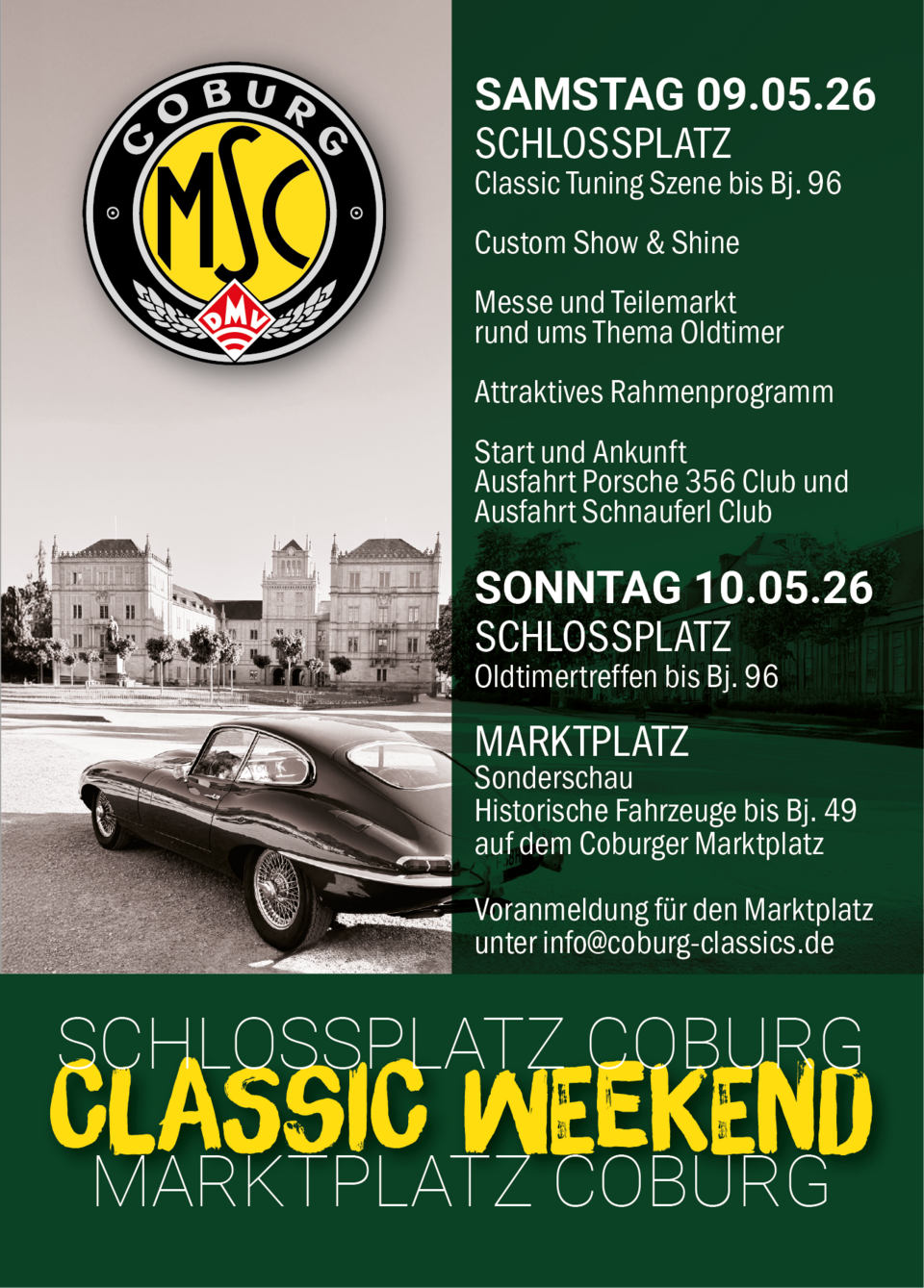 Messestände und Teilemarkt für den Oldtimerbereich (Anmeldung unter info@coburg-classics.de)